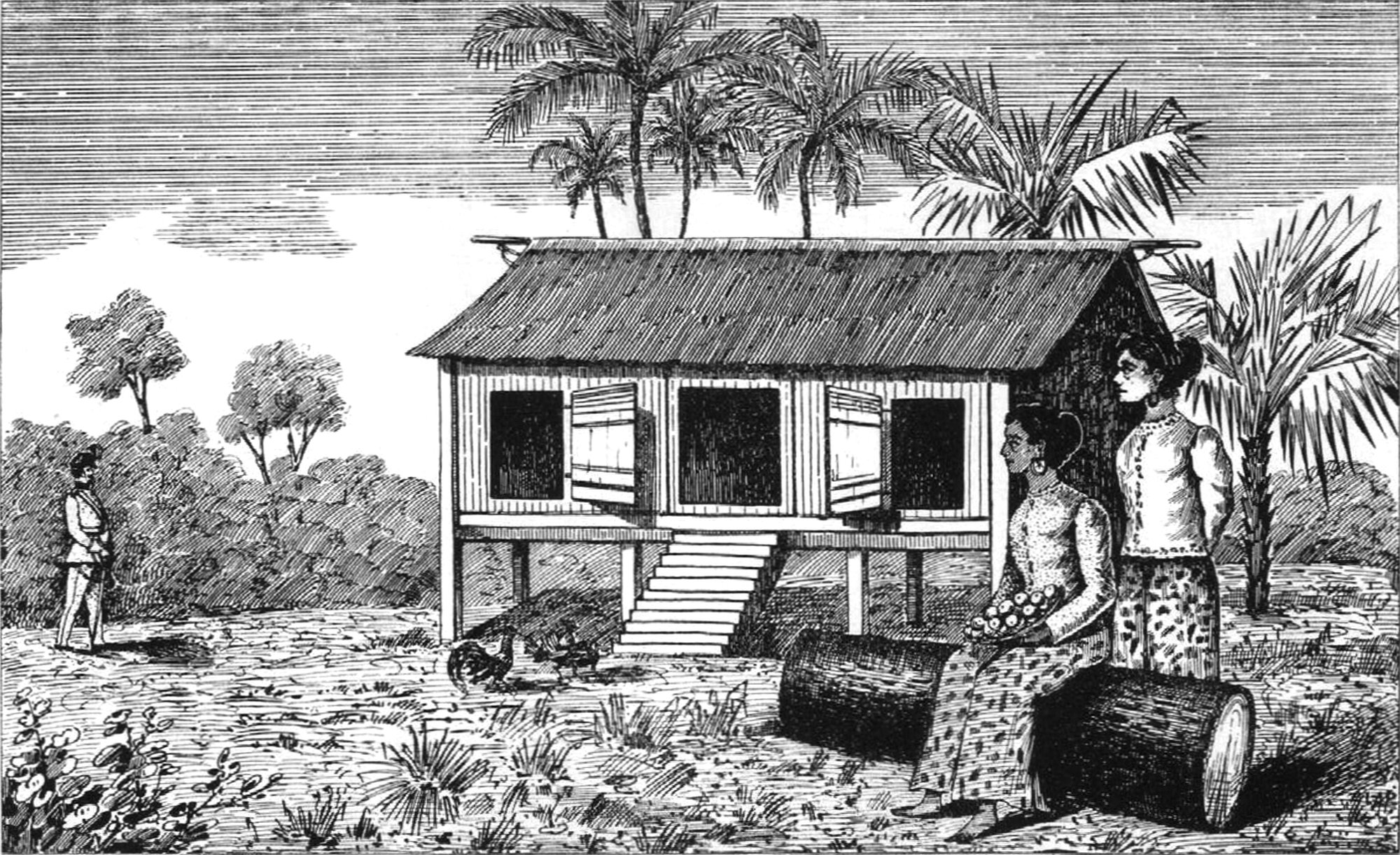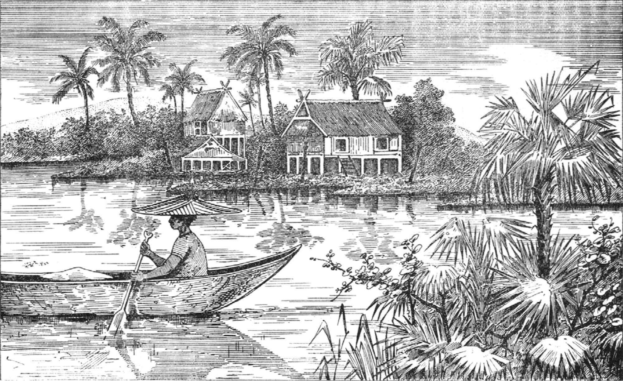 — Dajakische Häuser — Götzenbilder — Tuwak oder Palmwein —