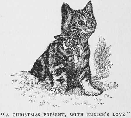 The alley cat leaves her kitten at the door of a hospitable house, and it is presented to Eunice in her Christmas stocking. The author has a strong sense of humor, a genuine love for the feline race, and a thorough insight into the child’s love of domestic animals.