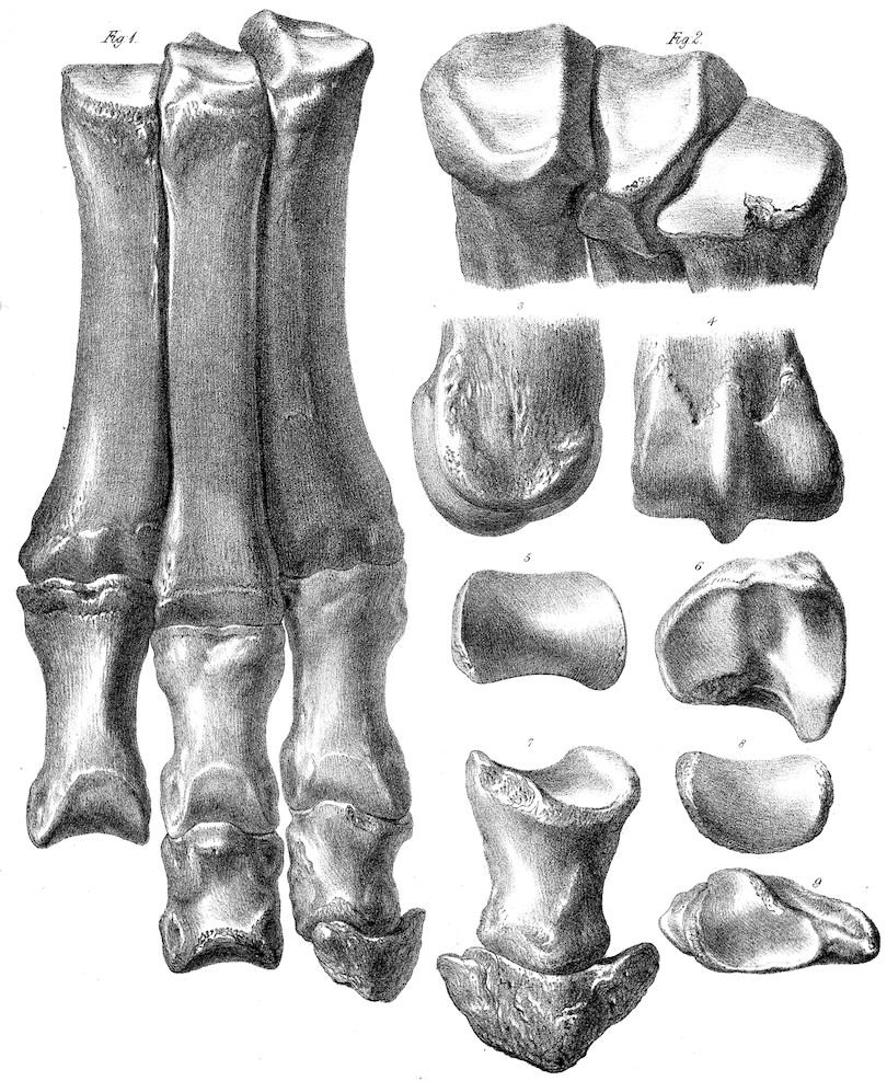 | XI. | Bones of the right fore-foot, Macrauchenia Patachonica. |