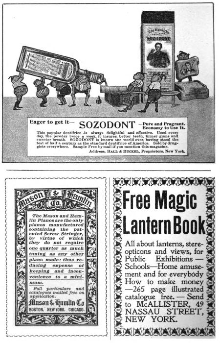 All about lanterns, stereopticons and views, for Public Exhibitions—Schools—Home amusement and for everybody How to make money—265 page illustrated catalogue free.—Send to McALLISTER, 49 NASSAU STREET, NEW YORK.