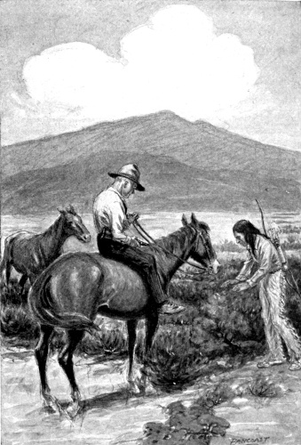 After a considerable time and in spite of numberless difficulties—Injun, being without any clothes whatever, suffered somewhat from the briars and rough vines and branches—the strange procession arrived at the glade where the horses had been left, and found that the animals were still there. And while it would have done Pedro good to have been compelled to walk back to the Bar O ranch, yet Whitey figured that it would delay them unnecessarily, and, therefore, he decided to tie the gentleman on the pack-horse. To do this, it would be necessary to untie the hobbles that limited Pedro's leg-action, and the vine was accordingly cut, releasing his legs, while Injun stood over him with the club, ready to "soak 'em" at the first move. Whitey looked at the gleaming bronze skin of Injun and asked, "Aren't you cold, Injun?" Injun disclaimed any such feeling contemptuously.