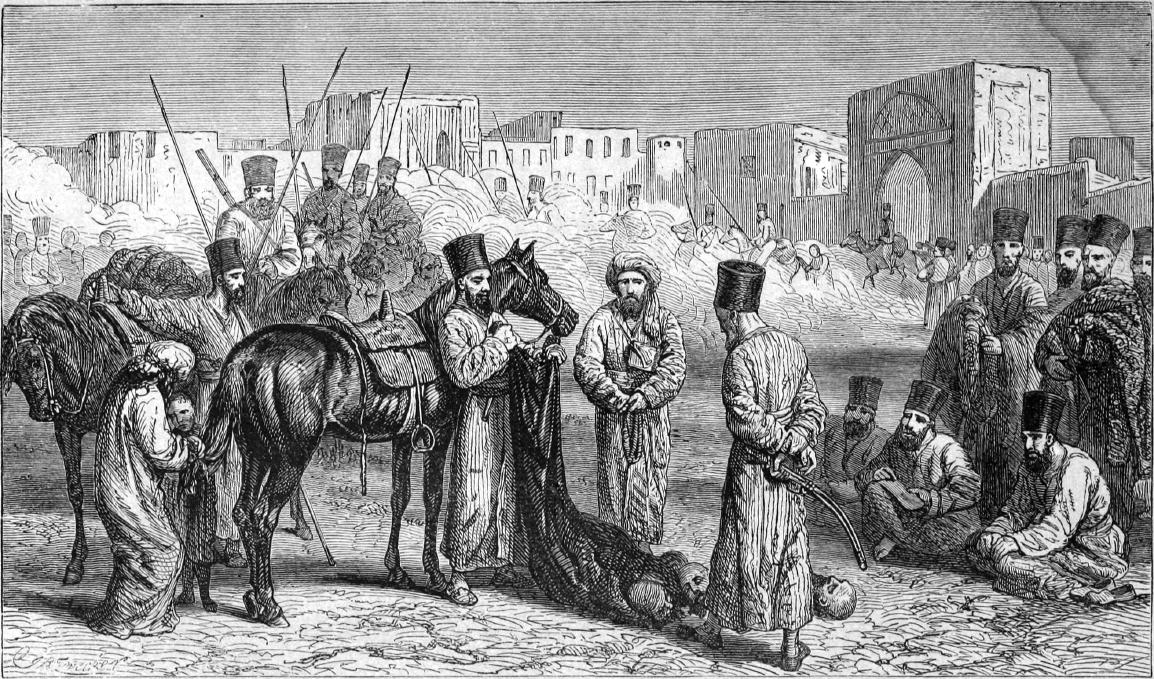A Dervaze No-n keresztül tartám bevonulásomat, s bizonyára nem egyhamar fogom feledni, mennyi fáradságomba került a szamarak, tevék és öszvérek tömegén át, melyek szalmával, árpával, persa s európai árukötegekkel megrakva, a kapu bejáratánál borzasztó rendetlenségben tolongtak, magamnak utat törnöm. Lábaimat a nyeregben magam alá kapva, s a többiekhez hasonlóan „khaberdar! khaberdar“-t (vigyázz!) kiáltva, sikerült végre a városba behatolnom. Nem kevesebb bajjal törtem keresztül a bazáron, s valóban örültem, midőn végre minden zúzás, ütés vagy szúrás nélkül a török követség palotájához értem.
