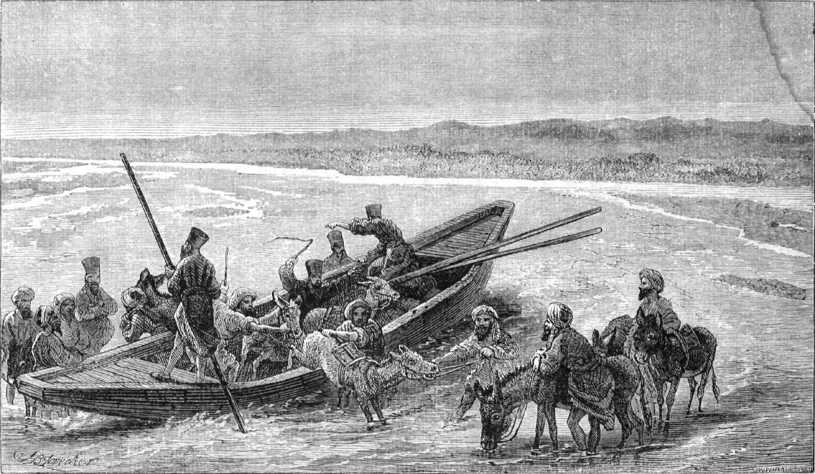 129) Hogy az orosz hajók az Oxuson nem mennek tovább, egyes egyedül e folyam számos s gyorsan váltakozó homoktorlaszainak tulajdonitható. Csodálom, hogy Burnes oly kedvezőn nyilatkozott hajózhatásáról. Oly hajósok, kik egész életöket az Oxuson töltötték, beszélték nekem, hogy a ma szerzett tapasztalatokat holnap már nem lehet használni, oly váltakozók a zátonyok.