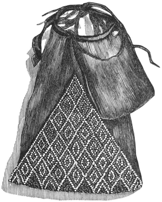 The net used for this purpose is made out of the tendons drawn from the tails of kangaroos. When they kill one of these animals, the natives always reserve the tendons, dry them carefully in the sun, and keep them in reserve for the many uses to which they are put. The sinews taken from the leg of the emu are dried and prepared in the same manner. In order to convert the sinew[764] into thread, two of the fibres are taken and rolled upon the thigh, just as is done with the fibre of the bulrush root. A thread of many yards long is thus spun, and is formed into a net with meshes made exactly after the European fashion. Sometimes it is left plain, but usually it is colored with red ochre, or white with pipe-clay, according to the taste of the wearer. These tendons, by the way, are valued by the white colonists, who use them chiefly for whip-lashes, and say that the tendon is more durable than any other material.