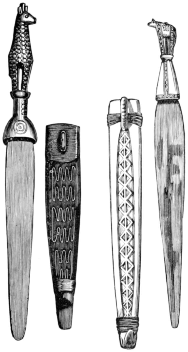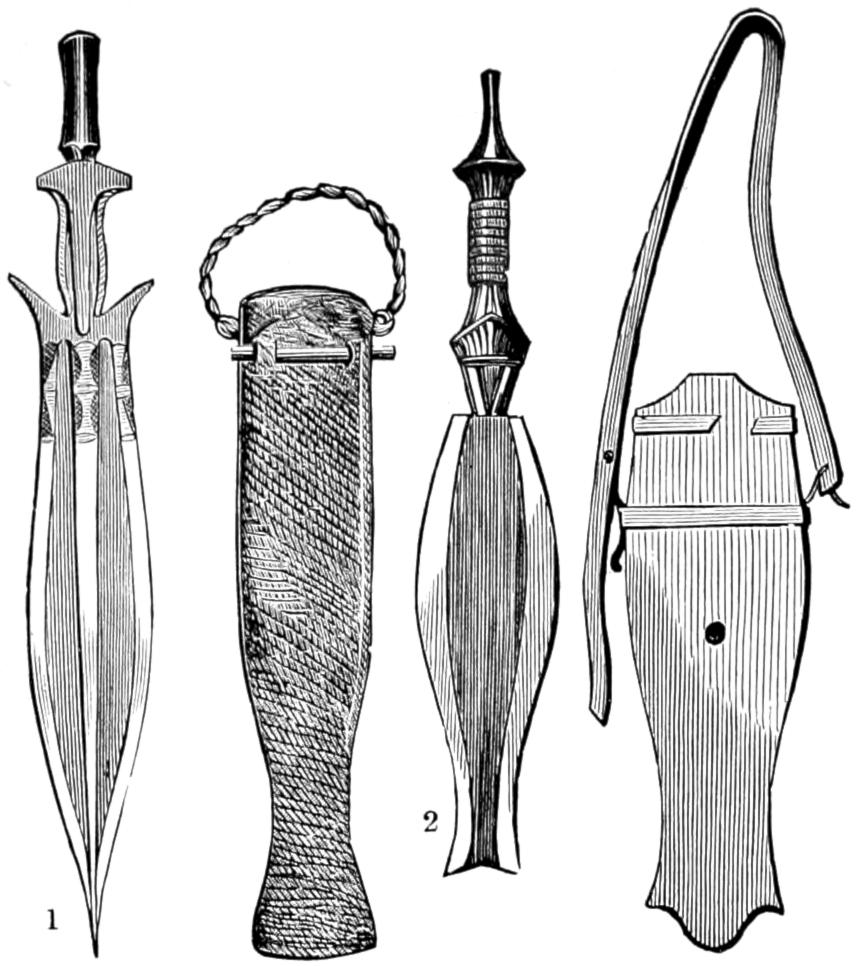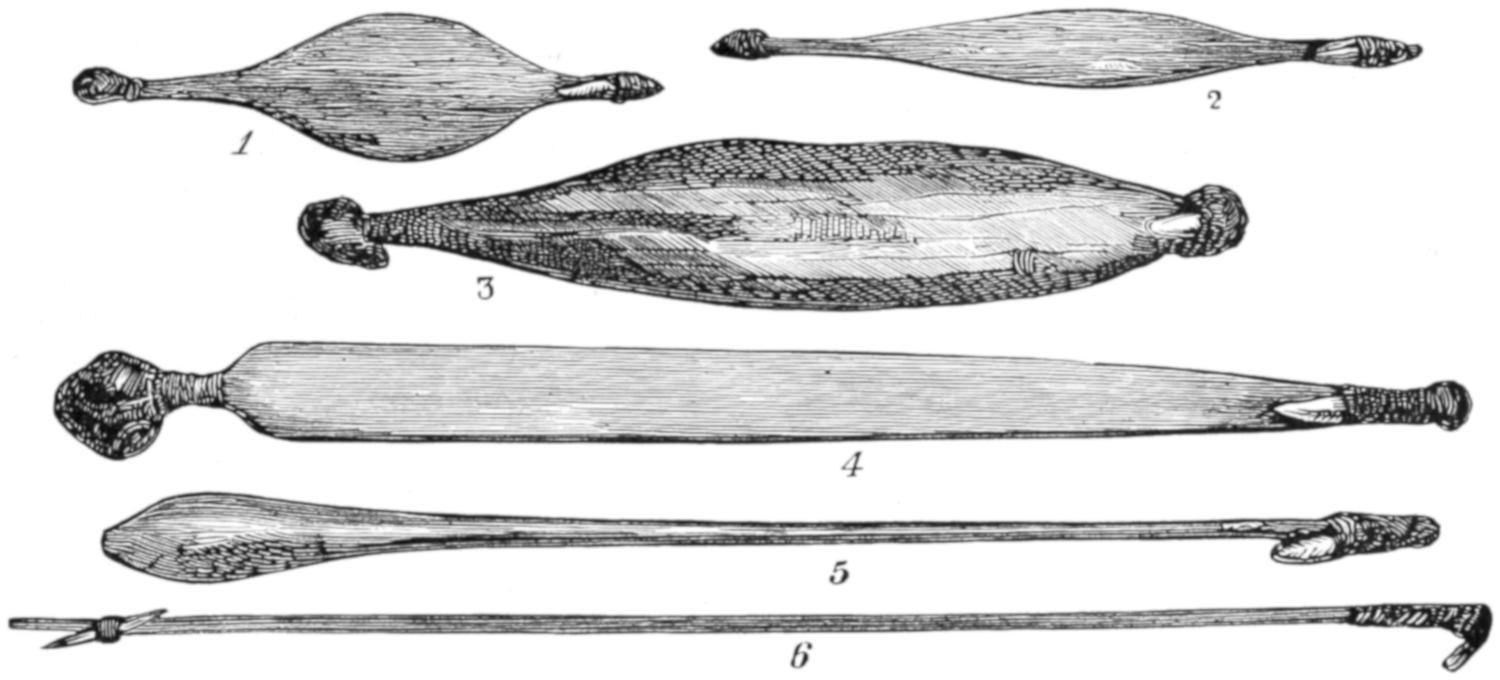 The engravings with which the work is profusely illustrated have been derived from many sources. For the most part the countenances of the people have been drawn from photographs, and in many instances whole groups taken by the photographer have been transferred to the wood-block, the artist only making a few changes of attitude, so as to avoid the unpleasant stiffness which characterizes photographic groups. Many of the illustrations are taken from sketches made by travellers, who have kindly allowed me to make use of them; and I must here express my thanks to Mr. T. Baines, the accomplished artist and traveller, who made many sketches expressly for the work, and placed at my disposal the whole of his diaries and portfolios. I must also express my thanks to Mr. J. B. Zwecker, who undertook the onerous task of interpreting pictorially the various scenes of savage life which are described in the work, and who brought to that task a hearty good-will and a wide knowledge of the subject, without which the work would have lost much of its spirit. The drawings of the weapons, implements, and utensils, are all taken from actual specimens, most of which are in my own collection, made, through a series of several years, for the express purpose of illustrating this work.