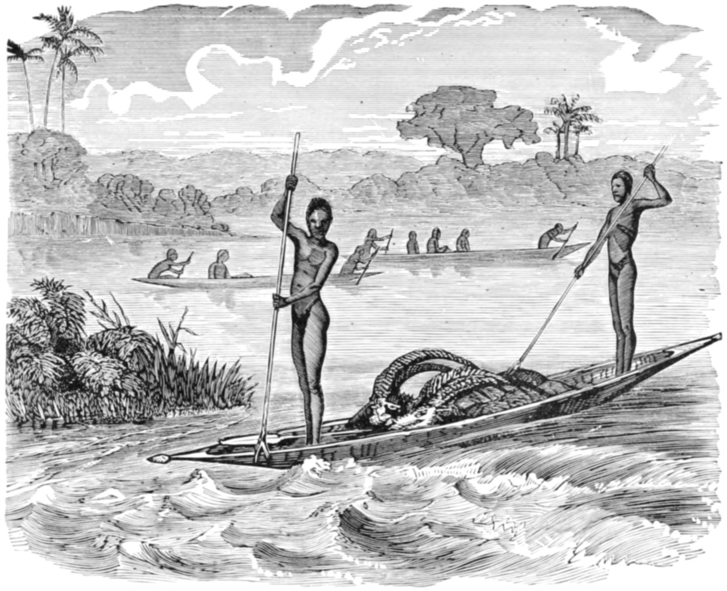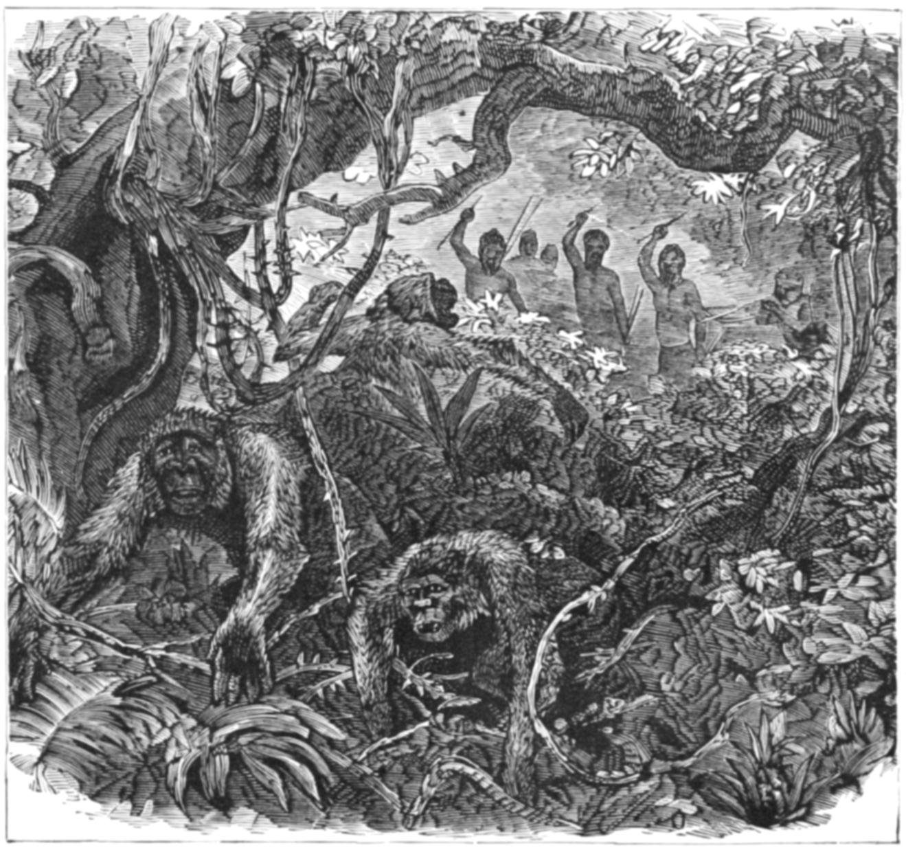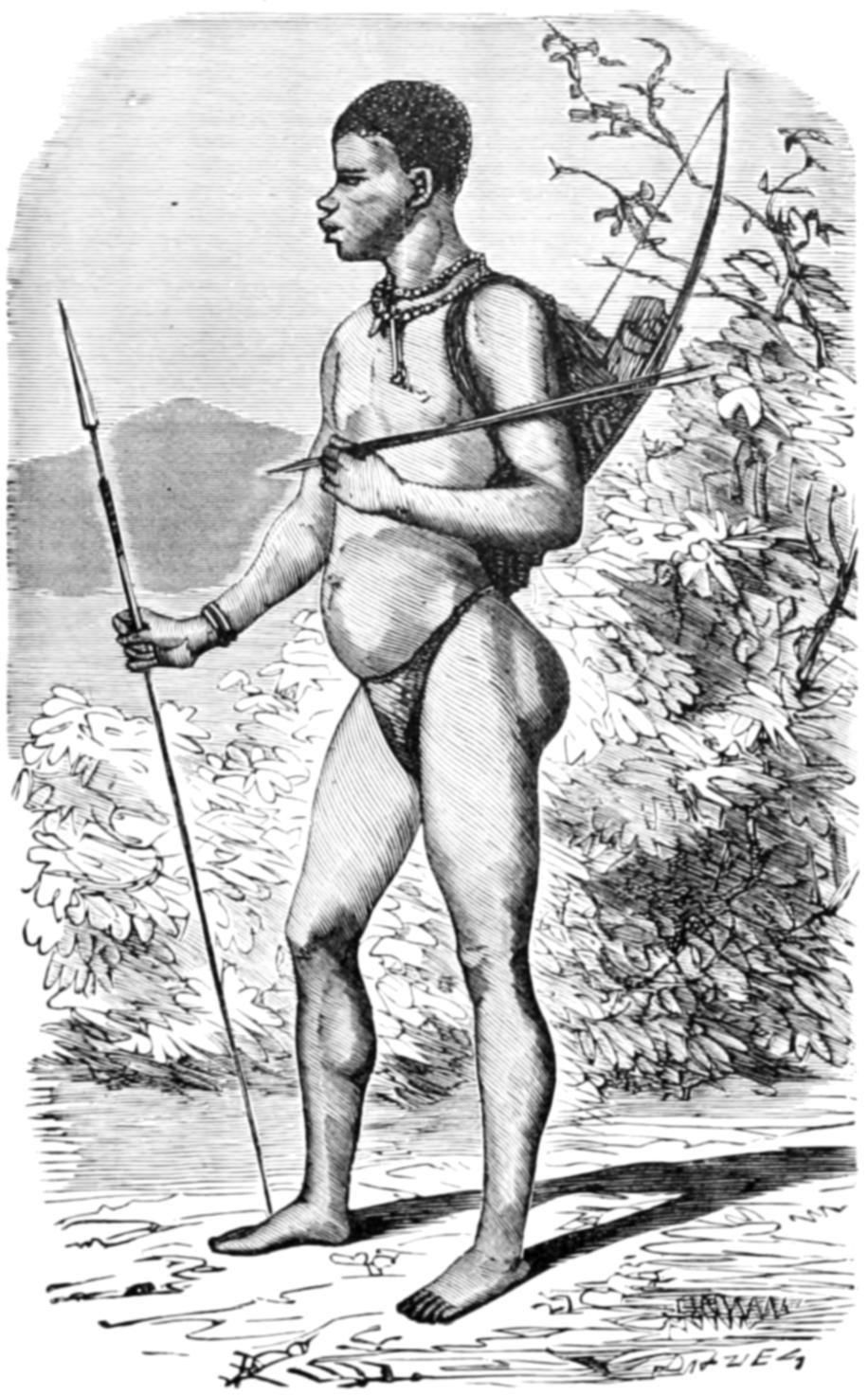 The engravings with which the work is profusely illustrated have been derived from many sources. For the most part the countenances of the people have been drawn from photographs, and in many instances whole groups taken by the photographer have been transferred to the wood-block, the artist only making a few changes of attitude, so as to avoid the unpleasant stiffness which characterizes photographic groups. Many of the illustrations are taken from sketches made by travellers, who have kindly allowed me to make use of them; and I must here express my thanks to Mr. T. Baines, the accomplished artist and traveller, who made many sketches expressly for the work, and placed at my disposal the whole of his diaries and portfolios. I must also express my thanks to Mr. J. B. Zwecker, who undertook the onerous task of interpreting pictorially the various scenes of savage life which are described in the work, and who brought to that task a hearty good-will and a wide knowledge of the subject, without which the work would have lost much of its spirit. The drawings of the weapons, implements, and utensils, are all taken from actual specimens, most of which are in my own collection, made, through a series of several years, for the express purpose of illustrating this work.