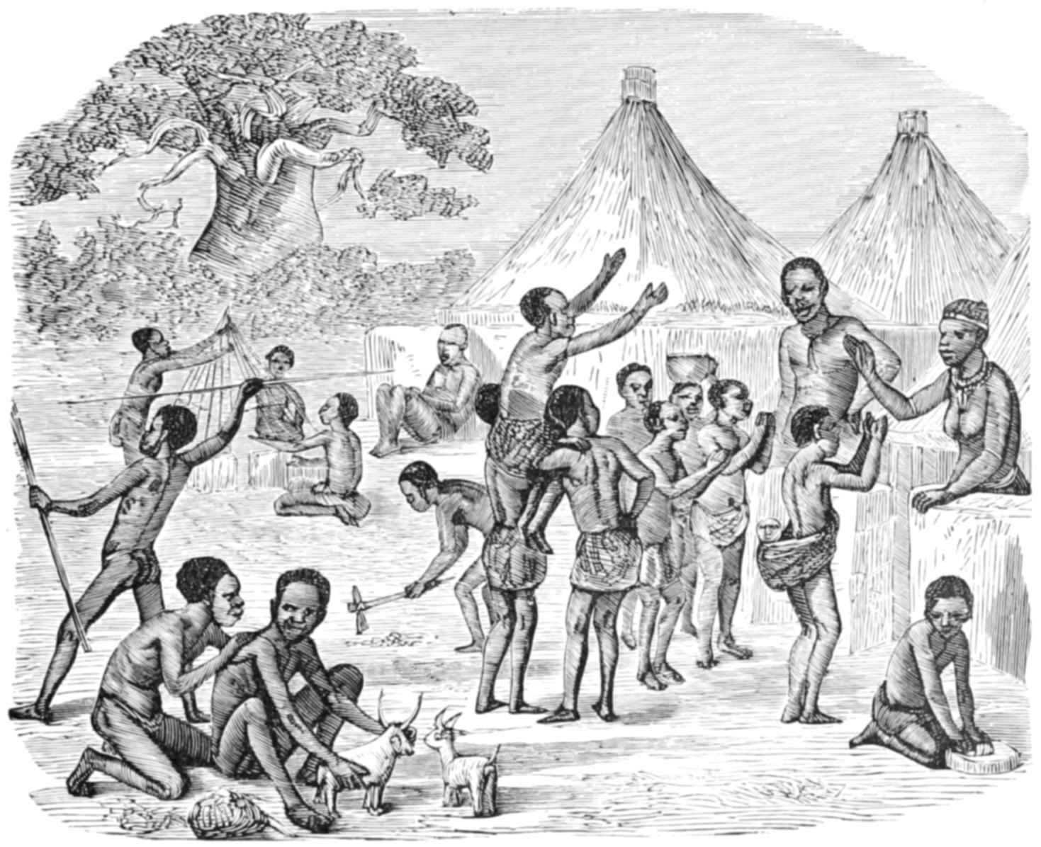 That all uncivilized tribes should be mentioned, is necessarily impossible, and I have been reluctantly forced to dismiss with a brief notice, many interesting people, to whom I would gladly have given a greater amount of space. Especially has this been the case with Africa, in consequence of the extraordinary variety of the native customs which prevail in that wonderful land. We have, for example, on one side of a river, a people well clothed, well fed, well governed, and retaining but few of the old savage customs. On the other side, we find people without clothes, government, manners, or morality, and sunk as deeply as man can be in all the squalid miseries of savage life. Besides, the chief characteristic of uncivilized Africa is the continual change to which it is subject. Some tribes are warlike and restless, always working their way seaward from the interior, carrying their own customs with them, forming settlements on their way, and invariably adding to their own habits and superstitions those of the tribes among whom they have settled. In process of time they become careless of the military arts by which they gained possession of the country, and are in their turn ousted by others, who bring fresh habits and modes of life with them. It will be seen, therefore, how full of incident is life in Africa, the great stronghold of barbarism, and how necessary it is to devote to that one continent a considerable portion of the work.