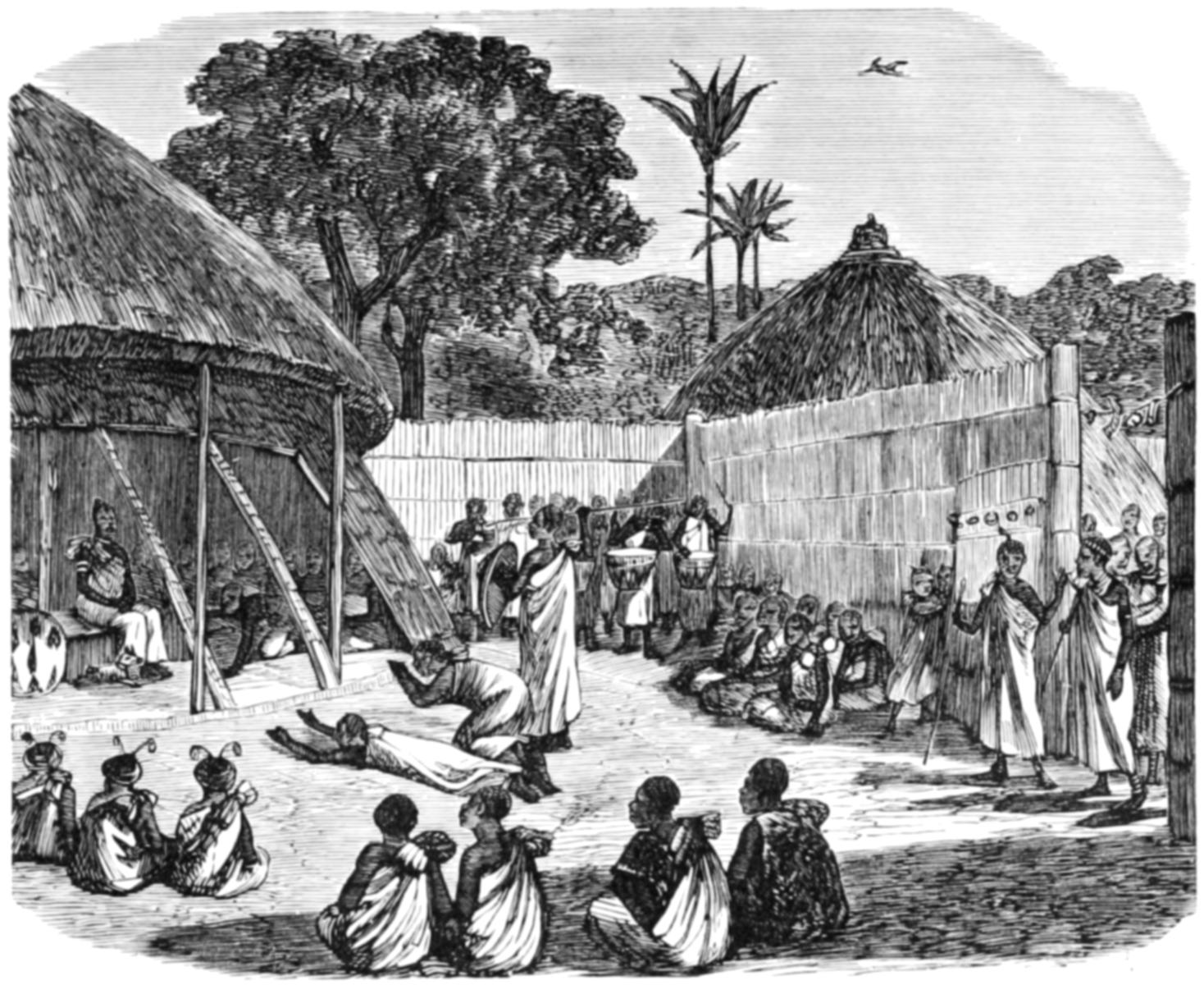 The ceremony being over, a piercing yell is set up as a signal for the women to return to the camp, and the newly-admitted man follows them, accompanied by their friends, all chanting a song of joy, called the korinda braia. They then separate to their respective fires, where they hold great feastings and rejoicings (see engraving No. 1, page 759); and the ceremonies are concluded with the dances in which the Australians so much delight.