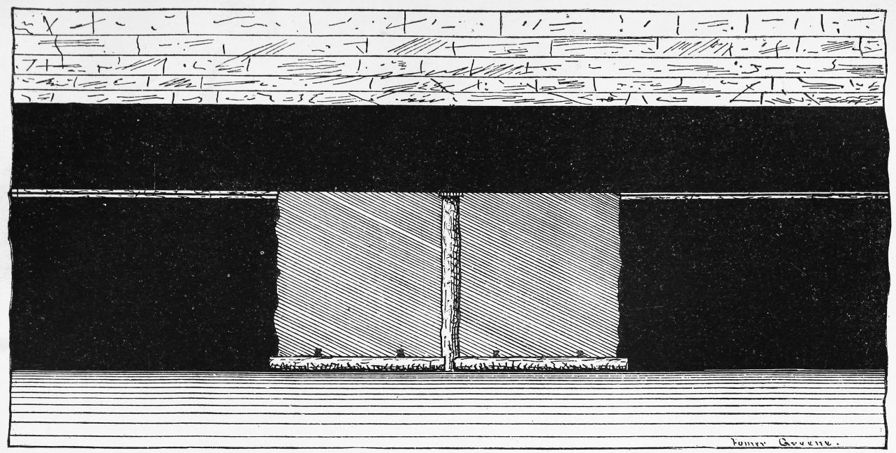 As has already been said, the plants of the Carboniferous age were exceedingly abundant and luxuriant. They grew up richly from the clayey soil, and formed dense jungles in the vast marshes which covered so large an area of the earth’s surface. Ferns, mosses, and tufts of surface vegetation, and the leaves, branches, and trunks of trees fell and decayed on the place where they grew, only to make the soil more fertile and the next growth richer and more luxuriant. Year after year, century after century, this process of growth and decay went on, until the beds of vegetable matter thus deposited had reached a great thickness. But condensation was still in progress in the earth’s body, and in consequence of it her crust, of necessity, at times contracted and fell. When it did so the land sank throughout vast[15] areas, these beds of incipient coal went down, and over the great marshes the waters swept again, bringing drift of vegetation from higher levels to add to that already buried. Then over these deposits of vegetable matter the sand and mud and gravel were laid up anew, and the clayey soil from which the next rich growth should spring was spread out upon the surface. This process was repeated again and again, as often, indeed, as we find seams of coal in any coal bed. Thus the final condition for the formation of coal was met, the exclusion of atmospheric air from this mass of decaying vegetation was complete, and under the water of the ocean, under the sand and silt of the shore, under the new deposits of succeeding ages, the transformation went on, the wood of the Carboniferous era became the coal of to-day, while above and below it the sand and clay were hardened into rock and shale.