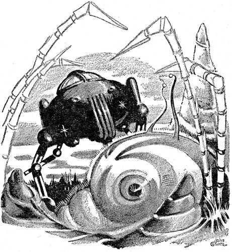 Gingerly he adjusted the controls of the tank-car so that it would walk carefully through the village. Years ago the crude spacesuits with which planetary explorers were encumbered were found to be too clumsy and dangerous for use. In their place were developed the tank-cars.