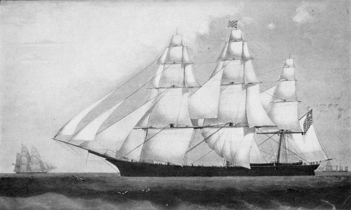 THE Clipper Ship Era began in 1843 as a result of the growing demand for a more rapid delivery of tea from China; continued under the stimulating influence of the discovery of gold in California and Australia in 1849 and 1851, and ended with the opening of the Suez Canal in 1869. These memorable years form one of the most important and interesting periods of maritime history. They stand between the centuries during which man navigated the sea with sail and oar—a slave to unknown winds and currents, helpless alike in calm and in storm—and the successful introduction of steam navigation, by which man has obtained mastery upon the ocean.