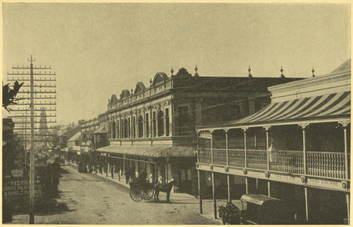 At last I saw the lights of Cue. Electric lights in the streets, horses and carts, the shrill whistle of the railway engine, boys calling out the evening papers, and the stopping of the coach to deliver the mails at the brilliantly lighted and splendid post-office, told me that I had emerged from the “back-blocks” and was once more nearing the metropolis.