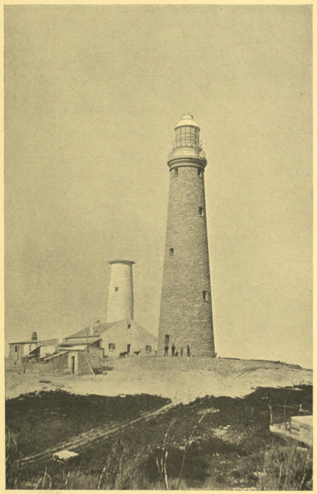 Mr. Broadhurst, to whom I am indebted for all the information relating to the Abrolhos, 35 miles from the mainland, gave me, as a great favour, a copper coin from the Batavia, wrecked there in 1629, also a part of a pair of scissors that have nearly lost their form, and other relics of the past. A very interesting curiosity is a pair of large silver buttons with links, in splendid preservation and very slightly tarnished. The figures on these buttons represent Joseph and Potiphar’s[332] wife. The Abrolhos are the abode of countless millions of birds, principally the noddy and sooty tern, which in the breeding season congregate there in such numbers that the sky is quite obscured by their flight, and everything is in almost total darkness. The group of islands have been leased from the Government since 1883 by Messrs. Broadhurst and McNeill, who command a very large trade in guano. The main stations in the group are Rat, Pelsart, and Gun Islands, on each of which there are commodious managers’ quarters and laboratory, besides kitchen and quarters for 48 hands. No Australian should neglect to see the relics of the wrecks on the Abrolhos that are in the Perth Museum. Mr. Broadhurst showed me a book, printed in the Dutch language, that he accidentally came across on a London bookstall in 1895, being then on a tour and engaged in collecting information concerning early Australia. The book bore the date of 1647, and has since been translated into English by Mr. Siebenhaur, a Dutch gentleman in Perth, and proved to be, strange to say, a complete narrative of the wreck of the Batavia and the massacre of the people, in 1629, at the Abrolhos Islands. The Batavia was the commodore’s ship of a fleet of eleven vessels sent from Amsterdam in 1628 to the East Indies in search of treasure and to form a colony on one of the islands. Storms arose, the commodore’s vessel was separated from the others, and finally got down among the perilous banks of the Abrolhos, where the vessel became a wreck. After much danger, the people, numbering several hundreds—soldiers, sailors, women and children—were landed on two of the islands, several trips having to be made between the ship and the shore before this could be effected. Some water and bread was also got ashore, as well as some cases of treasure, jewels, and gold-laced clothing belonging to the Dutch Government that the commodore was anxious to save. The ship shortly afterwards foundered and the hardships of the seafarers commenced. It was found that there was very little fresh water on the island, so the commodore, Pelsart, and several of the men set off in the sloop, which had been saved,[333] to the mainland to look for water for their fellows. After much difficulty six of them succeeded in landing by swimming, the shore being stony and rocky, and great breakers beating violently against the rocks so that it was not safe to take the sloop in too near. They saw smoke rising, and going towards it, saw four dark figures creeping on their hands and knees, who, on the approach of the sailors, leaped to their feet and fled away at full speed. Each carried a stick, no doubt a boomerang. Around the fires were the bones of birds. The savages were naked, and were the first ever seen on Australian soil by white men. The sailors dug holes, trying to find fresh water, but could find very little, and returned to the ship disconsolate. The commodore then, knowing that by returning to the islands he could do no good for his fellow sufferers, determined to return to Batavia for assistance. On arrival there he obtained speedy help from the Government, and provided with all necessaries and a good crew, at once set out again for the Abrolhos to succour the shipwrecked people. On arrival there they saw, close to where they had been wrecked, smoke from several fires, and were much rejoiced, hoping to find all or most of the poor people alive. Having cast anchor, the commodore, taking with him a cask of water, bread and wine, went in his boat to the highest island, but on arrival there found no one, at which he was much astonished. Jumping ashore, they saw a little boat coming round the northern point with four men rowing; one of them jumped ashore and welcomed the commodore, but begged him to return to the ship, as there was a party of miscreants who intended to seize the vessel. He then told the terrible story of the massacre. These miscreants had murdered 120 people on the island, now called Pelsart Island, or “Batavia’s Churchyard.” The commodore then sorrowfully returned to the ship. The man who told the commodore all this was named Webbey Hayes, and he with forty others had tried their best to save their comrades, and were then on what they called Long Island. The commodore took some boats and men and brought them away, arming them with muskets. With these he[334] proceeded to Batavia’s Churchyard and captured the mutineers. They found them all dressed in the beautiful clothes trimmed with gold lace belonging to the Government, and jewels were scattered about in all directions. The mutineers were divested of their gay clothes, put in irons and conveyed to Seal Island, to remain there till they should be tried, which was afterwards done, and they were then executed for their crimes. This is a very short and crude synopsis of the interesting translation of the Dutch book of which I have spoken, but may serve to give some idea of the Abrolhos. The many curios of this time that are spoken of on page 51 are well worth seeing. Previous to this, in 1540, Portuguese vessels had been driven on to the coasts of the Great South Land, as it was called. Houtmann, a Dutchman who had served with the Portuguese, had sighted the cluster of rocky islets and called them Abrolhos, a contraction of the Portuguese “Abro vos olhos” (“Keep your eyes open”). In far-back ages Chinese junks used to sail down to the Gulf of Carpentaria, and the natives of that part of Austra