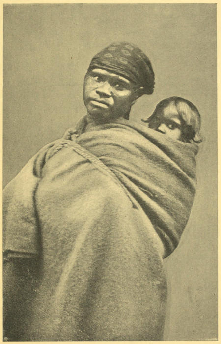 The journey from Lake Way to Nannine, over 120 miles of rather barren country, was one to be remembered. No coach having yet been started on this route, I was fortunate in being able to join a party of people, including two ladies, who were going there in their own conveyances; they had been in the[300] “back-blocks” for four years, and thought it time to take a holiday, especially as their husbands had made over £6000 each from their mines, and had given them £500 each to go to Victoria, see their friends, and have a good time, as I have no doubt they did. We camped out for four nights, but the weather was fine, and it was very pleasant to be under a canopy of stars, although towards morning it got pretty cold. The two ladies took it in turn to do the cooking, and would not hear of my doing anything, saying it would be a pity to roughen my hands, which, by the way, were becoming almost as brown as theirs. I quite enjoyed the bush-cooking. Johnny cake or “damper,” as it is called here, cooked in the wood-ashes, is very nice, especially with good butter, which we had in tins. Then there were plenty of wild turkeys about, some of which were shot for us. My companions had brought some tinned asparagus also, so, taking it altogether, our manna in the desert was not to be despised. We met a few aborigines during our journey, but they were generally very quiet and only asked for bacca and food. The lubras were carrying their pickaninnies in a coota (bag) on their backs (this is their usual custom except in the colder parts of the colony, where they are supplied with blankets and also with rations); they were also carrying sticks and some freshly killed birds. The women always have to carry all the burdens, their lords and masters stalking on ahead with their spears, no doubt on the look-out for game.