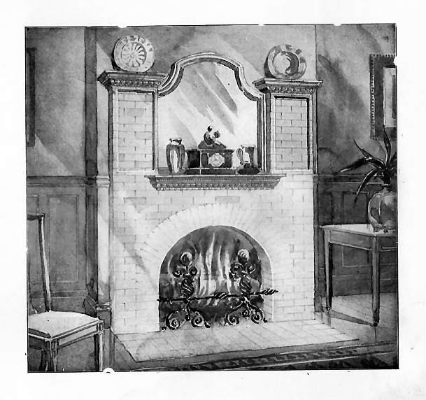 The designs in this book were all prepared by a well-known Boston architect whose extended European travel rendered him peculiarly fitted for the work, and the designs embody many of the best ideas of the best brickwork of England and the Continent. Some of the designs are purposely shown in the architect's original pen-and-ink drawings, while the others are shown as photographs furnished by our customers. We make the brick in six colors; viz., red, cream, buff, pink, brown, and gray: thus giving you the choice of a color which will harmonize with or contrast properly with any scheme of surrounding decoration. The sizes of many of the designs can be altered to fit a required space. In shipping the brick, we pack them carefully in sawdust, in barrels, and with every order we furnish an architect's scale drawing and directions, and any intelligent brick-mason can easily set the mantels up.
