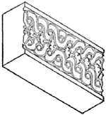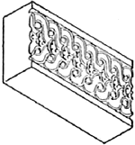 Price of cream, buff, gray, pink or brown bricks, $27. Additional cost of metal frame is $2 for iron or $4 for brass. Below is a drawing of each ornamental brick used in this design.
