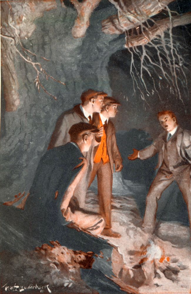 Clank-clank! Thump-thump! Car after car went past while Dud and Jimmy, white-faced, breathless and trembling from their exertions, crouched in a tangle of bushes beside the half-overturned hand-car, deafened, choked and blinded with dust, shudderingly grateful for their escape.