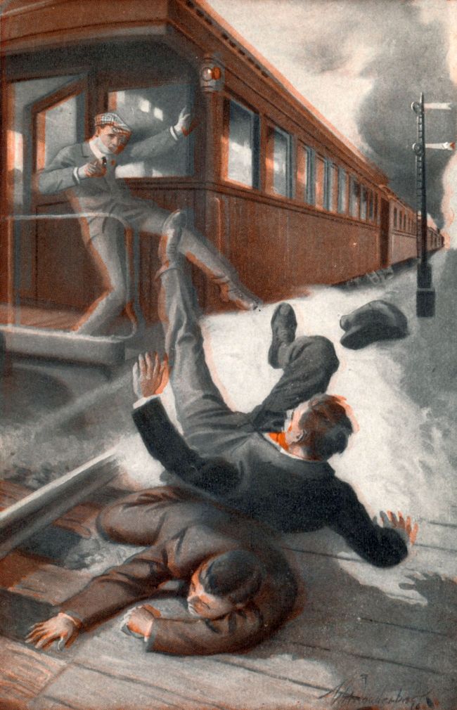 Dud hesitated an instant longer and then went to Jimmy’s assistance. The car was lumbersome, but they had no great difficulty in trundling it along the ties and then swinging it to the rails. Fortunately, a bend in the tracks hid them from the little station.