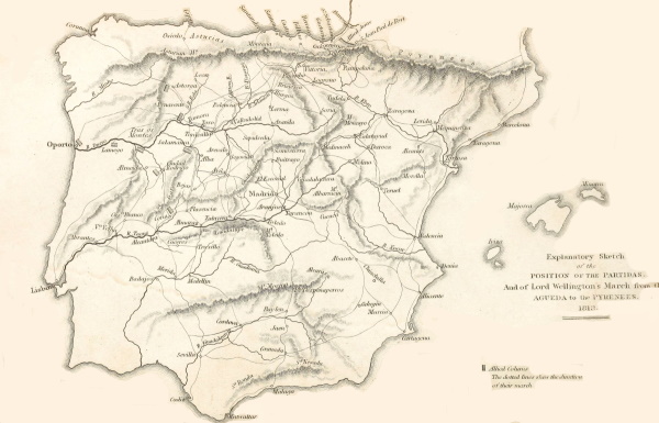 | Dangerous discontent of the Portuguese army—Allayed by Wellington—Noble conduct of the soldiers—The left wing of the allies under general Graham marches through the Tras os Montes to the Esla—The right wing under Wellington advances against Salamanca—Combat there—The allies pass the Tormes—Wellington goes in person to the Esla—Passage of that river—Cavalry combat at Morales—The two wings of the allied army unite at Toro on the Duero—Remarks on that event—Wellington marches in advance—Previous movements of the French described—They pass the Carion and Pisuerga in retreat—The allies pass the Carion in pursuit—Joseph takes post in front of Burgos—Wellington turns the Pisuerga with his left wing and attacks the enemy with his right wing—Combat on the Hormaza—The French retreat behind Pancorbo and blow up the castle of Burgos—Wellington crosses the Upper Ebro and turns the French line of defence—Santander is adopted as a dépôt station and the military establishments in Portugal are broken up—Joseph changes his dispositions of defence—The allies advance—Combat of Osma—Combat of St. Millan—Combat of Subijana Morillas—The French armies concentrate in the basin of Vittoria behind the Zadora | 520 |