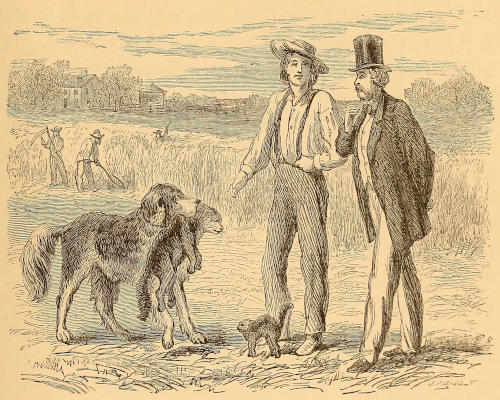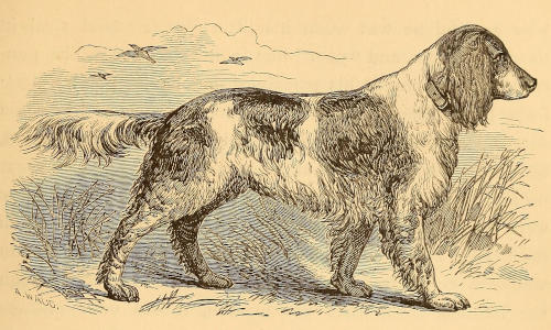 In the morning, when they started for a ramble, the[169] dogs would all be on the alert to join them. There was first a tall old staghound named Maida, that considered himself the confidential friend of his master, walked by his side, and looked into his eyes as if asserting a partnership in his thoughts. Then there was a black greyhound named Hamlet, a more frisky and thoughtless youth, that gambolled and pranced and barked and cut capers with the wildest glee; and there was a beautiful setter[170] named Finette, with large mild eyes, soft silken hair, and long curly ears,—the favorite of the parlor; and then a venerable old greyhound, wagging his tail, came out to join the party as he saw them going by his quarters, and was cheered by Scott with a hearty, kind word as an old friend and comrade.