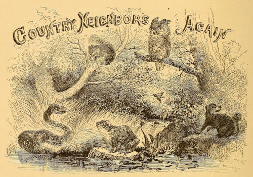 Do my dear little friends want to hear a word more about our country neighbors? Since we wrote about them, we have lived in the same place more than a year, and perhaps some of you may want to know whether old Unke or little Cri-cri have ever come up to sit under the lily-leaves by the fountain, or Master Furry-toes, the flying squirrel, has amused himself in pattering about the young lady’s chamber o’ nights? I am sorry to say that our country neighbors have entirely lost the neighborly, confiding spirit that they had when we first came and settled in the woods.