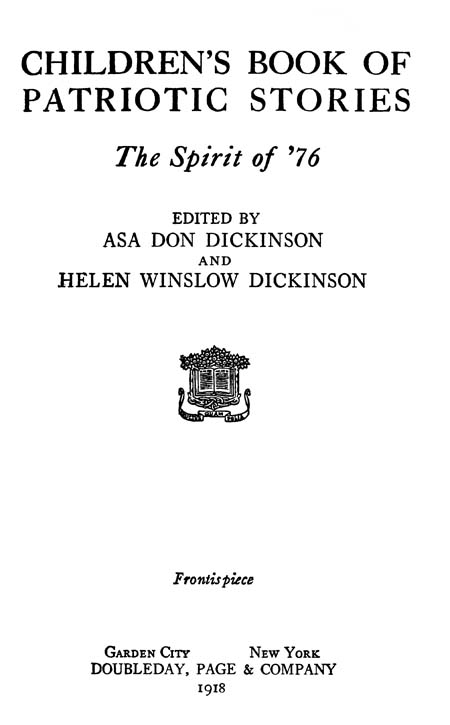 The Editors hope that a book of stirring tales like these—not history, but stories such as children love, that yet ring true in spirit—will serve to help, though ever so little, the Cause of Liberty and will aid in keeping aglow in the hearts of our young people the ardent spark which inspired our forefathers—the Spirit of ’76.