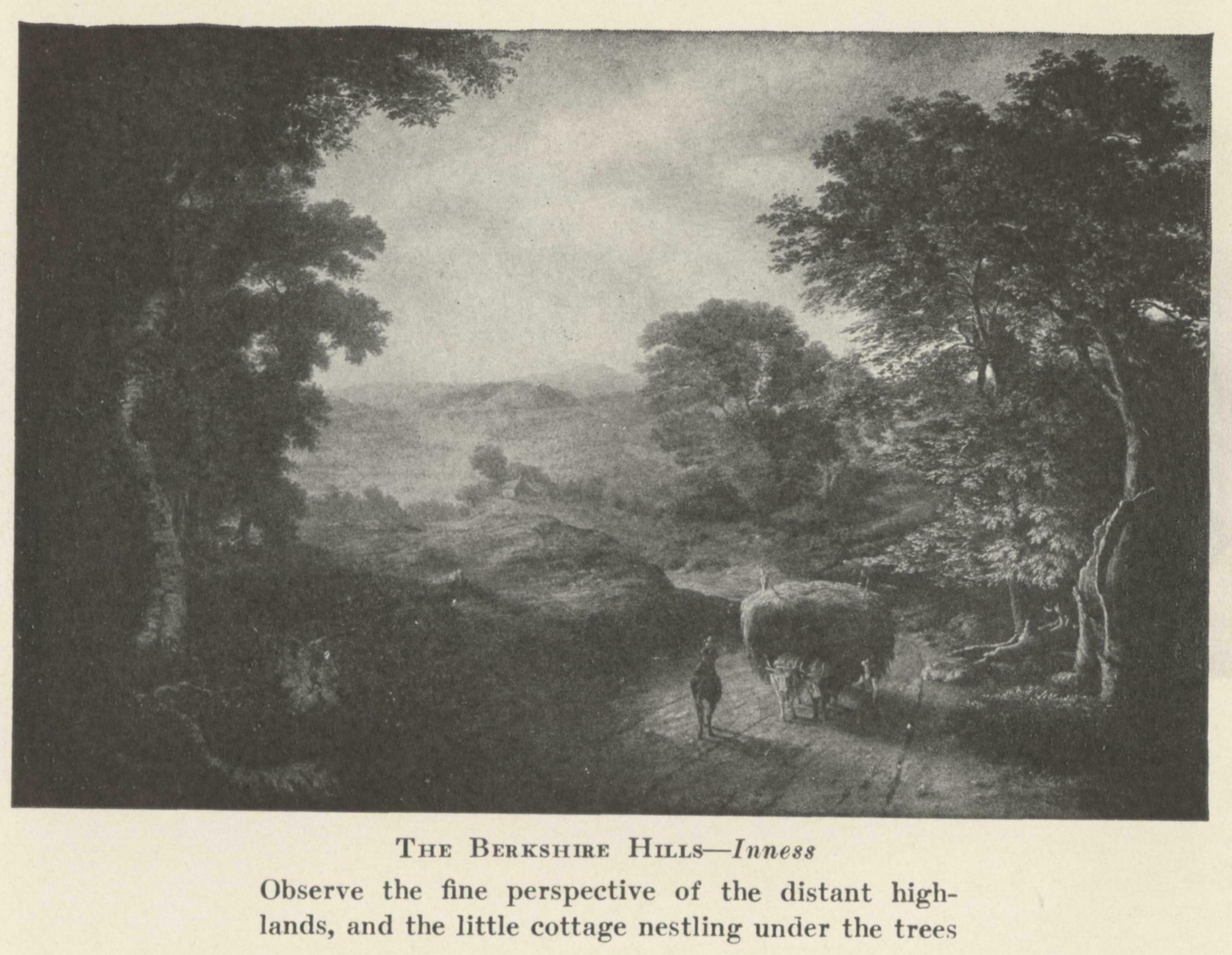 After the Centennial arose a taste for the painting of "plaques," upon which were the heads of ladies with strange-coloured hair; of leather-covered flatirons bearing flowers of unnatural colour, or of shovels decorated with "snow scenes." The whole nation began to revel in "art." It was a low variety, yet it started toward a goal which left the chromo at the rear end of the course, and it was a better effort than the mottoes worked in worsted, which had till then been the chief decoration in most homes. If the "buckeye" was hand-painting, this was "single-hand" painting, and it did not take a generation to bring the change about, only a season. After the Philadelphia exhibition the daughter of the household "painted a little" just as she played the piano "a little." To-day, much less than a man's lifetime since then, there is in America a universal love for refined art and a fair technical appreciation of pictures, while already the nation has worthily contributed to the world of artists. Sir Benjamin West, Sully, and Sargent are ours: Inness, Inman, and Trumbull.