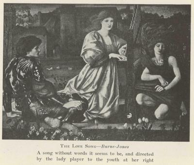 Among the first serious efforts to draw were the Egyptian square and pointed things, animals and men. The most that artists of that day succeeded in doing was to preserve the fashions of the time. Their drawings tell us that men wore their beards in bags. They show us, also, many peculiar head-dresses and strange agricultural implements. Artists of that day put down what they saw, and they saw with an untrained eye and made the record with an untrained hand; but they did not put in false details for the sake of glorifying the subject. One can distinguish a man from a mountain in their work, but the arms and legs embroidered upon Mathilde's tapestry, or the figures representing family history on an Oriental rug, are quite as correct in drawing and as little of a puzzle. As men became more intelligent, hence spiritualised, they began to express themselves in ideal ways; to glorify the commonplace; and thus they passed from Egyptian geometry to gracious lines and beautiful colouring.