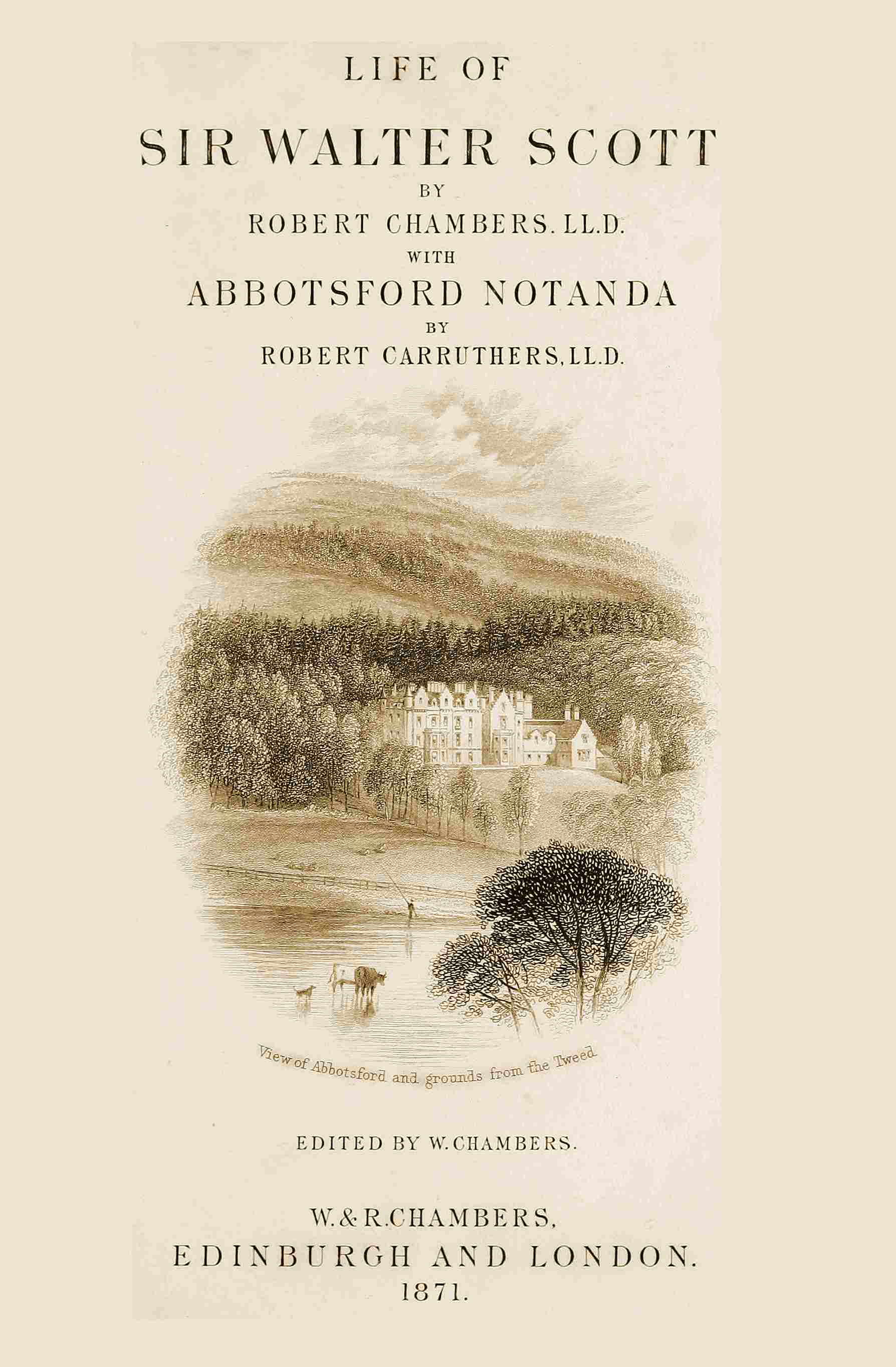 The present Memoir of Sir Walter Scott was written by my brother, the late Dr R. Chambers, immediately after the decease of the great novelist, and having been issued at a small price for popular reading, had what was then considered a large circulation—180,000 copies. It was subsequently republished, with some improvements. The Memoir is now reproduced in somewhat better style, as a small but fitting contribution in homage of the great man, the centenary of whose birth, 15th August 1871, is about to be very generally celebrated. I have taken the liberty of adding only a few paragraphs, distinguishable by being enclosed within brackets. The principal of these insertions refers to the manner in which my brother had the honour to become acquainted with, and acquired the esteem of, Sir Walter Scott.