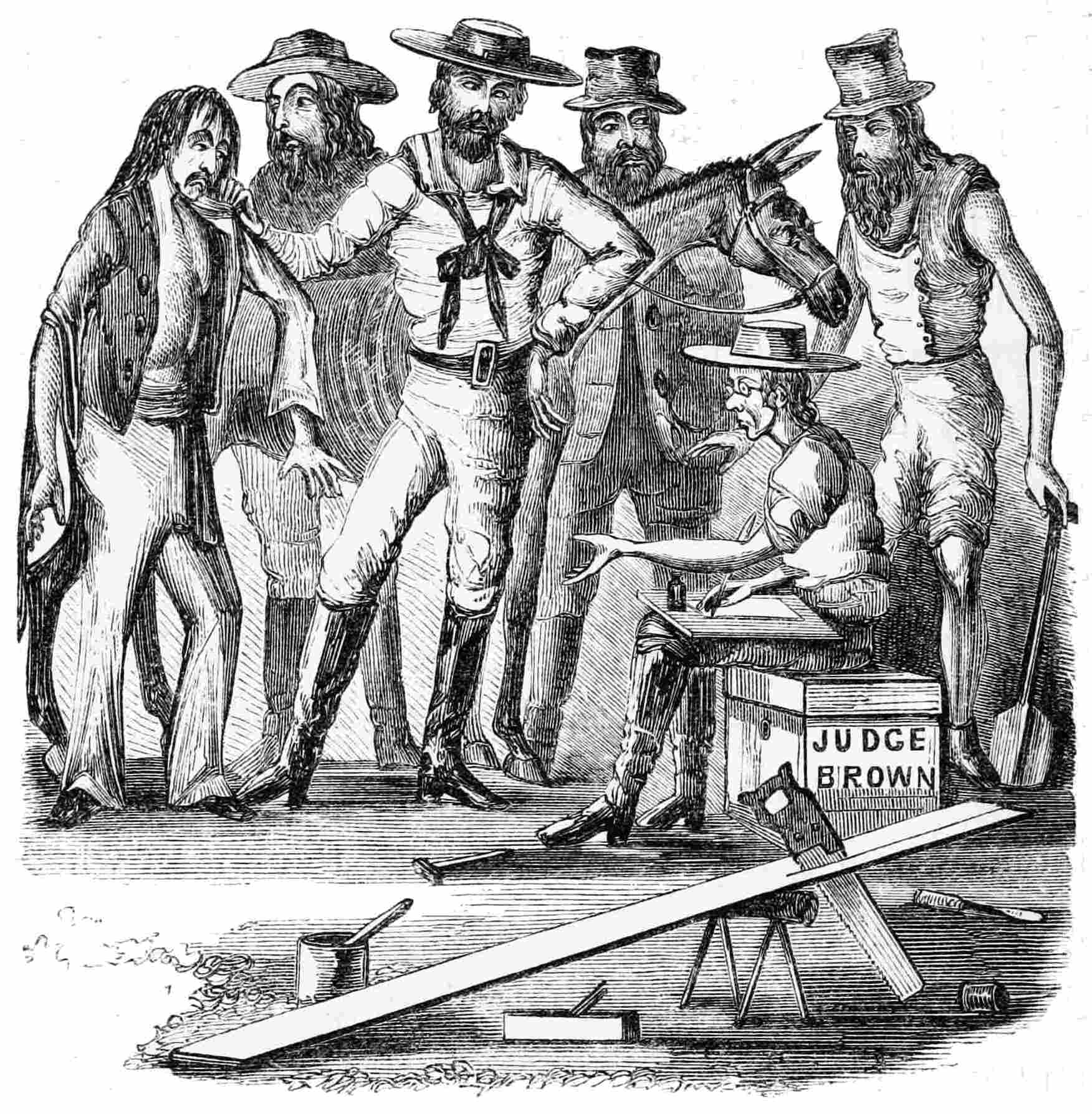 [17] The reader will observe, if he pleases, that in erecting this hotel I had no view to becoming its landlord: had I taken any situation in it, it would have been in the capacity of “boots,” which berth a “handy young man” can turn to better account in this country than even the head cook. That a cook’s situation, with or without tea and sugar is lucrative, the following anecdote will attest:—In ’49 the captain of a merchant brig at San Francisco having engaged a crew, regardless of expense, in lieu of that which had run away, regardless of their contracts and arrears of pay, found himself still in want of a cook. Meeting a negro on the beach he offered him the situation, and to the enquiry of the latter respecting salary, the captain said he could give but two pounds a day. Having cocked his hat, folded his arms and adjusted his legs as niggers do, this fellow laughed musically and said, “dat if de capten wish to hire heseff out for five pounds a day to fill dat occupation, jes walk up to the restaurant and he would set him to work immediently.”