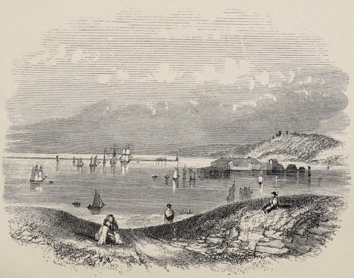 After standing here a short time, and watching the boats, which were sailing to and fro, some with sails, and some moved onwards by oars, they walked down from the high ground by a broad road, and then by some stone steps which had been cut in the rock, until they stood upon the beach.