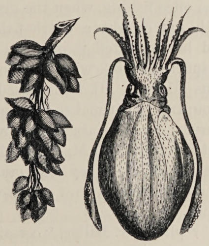 “I was once fishing, when the man in the boat with me caught a cuttle-fish in this way, and having lifted it into the boat too soon, it spurted its ink with such force as to spatter us all over. It is not used as food in this country, but it makes excellent bait.”
