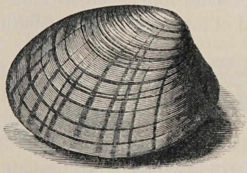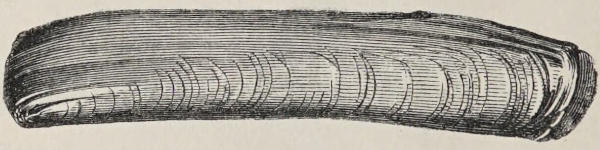 The number of shells which lay scattered along the beach was very great. Some were like snail-shells, but more solid. Mr. Miller knew the names, but as he thought that Henry would not be able to recollect them, he only told him that they crawled about rocks and sea-weeds, very much as snails do on land, some living on sea-weed, and others[41] on dead fish, or any animal substance they can find. Those which are named periwinkles and whelks are gathered by people who live near the sea, and sold for food, but they are neither nice nor wholesome. Others were what Mr. Miller called bivalves; that is, each animal had two shells, fastened together by a hinge. There were a great many large white cockle-shells, deeply furrowed, and having rows of sharp points on the outside. Some were yet larger, brown outside and white within, and strong enough[42] to scoop up sand with; others, which were flatter, were scarcely thicker than paper. Most of these were single, and had no fish in them; but many smaller kinds were found which had been washed in without injury. These were stowed away very carefully. The most singular of all was a white one, four or five inches long, shaped something like the pod of a pea, but open at both ends. This Mr. Miller called a razor-shell, and said that the animal lived in the sand, burrowing in it like an earth-worm, and, perhaps, living on the small sea-insects which it finds.
