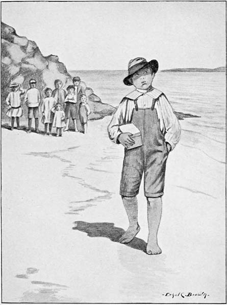 Kenneth waved his hat and shouted, but Tom did not seem to hear. He was at some distance out in the bay, rowing towards the bathing beach. They all shouted and waved, and finally Tom seemed to hear, for he looked around; but he did not show any intention of rowing towards the cave. Perhaps he still felt like an outlaw.