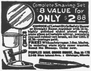 CHOICE of Latest Style Safety Razor or Straight Razor, together with 16-in. highly polished nickel plated stand, plate glass adjustable mirror, porcelain cup and rubber-set brush, all for ONLY $2.88—postage paid.