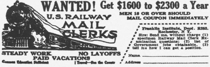 WANTED! U.S. RAILWAY MAIL CLERKS