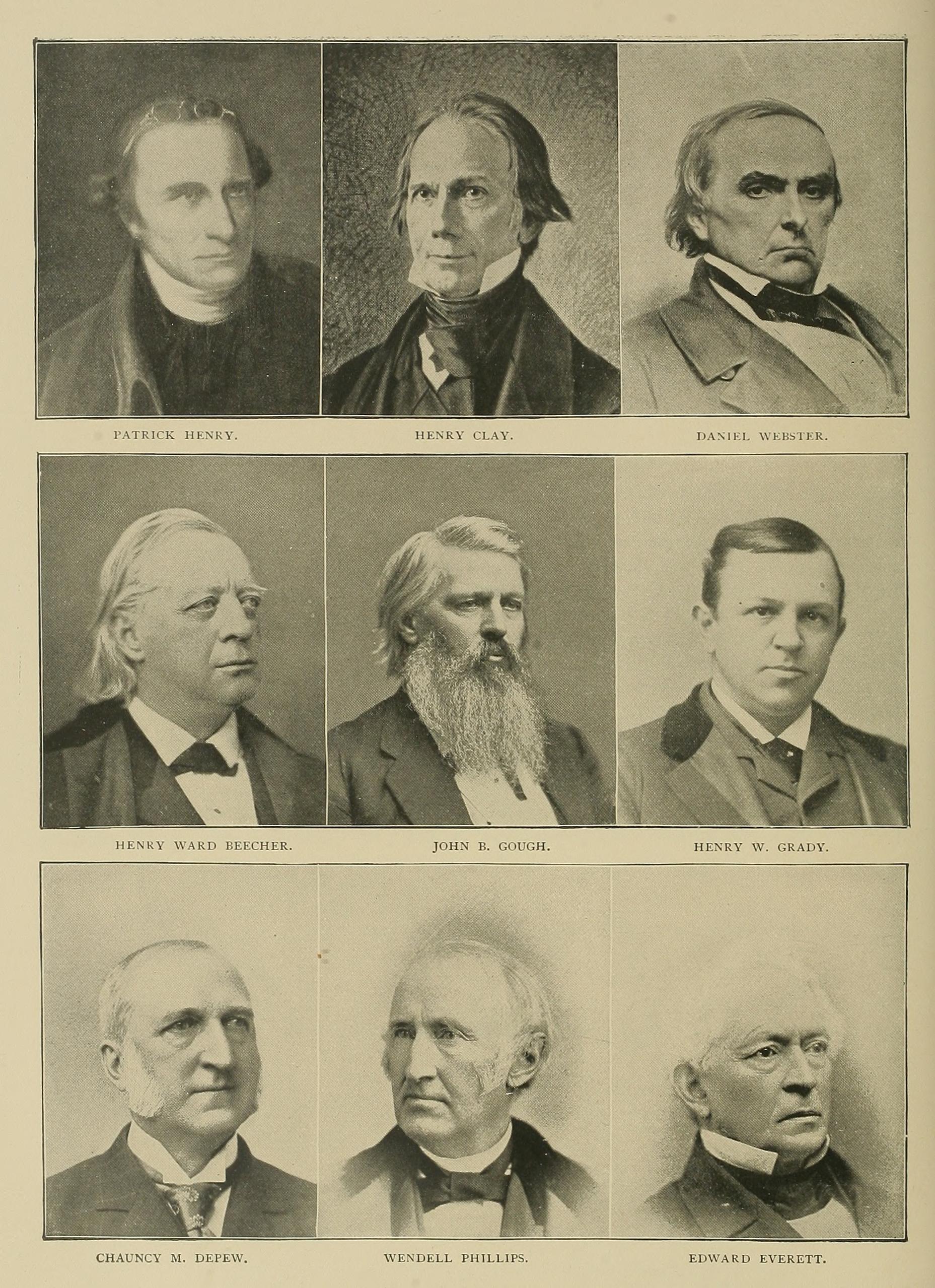 This brings us to the third point of classification. Other volumes of selections—where they have been classified at all—have usually placed selections of similar character together under the various heads of Narrative and Descriptive, Moral and Religious, Historical, etc. On the contrary, it has appeared to us the better plan in the construction of this volume to classify the authors, rather than, by dividing their selections, scatter the children of one parent in many different quarters. There has been no small difficulty in doing this in the cases of some of our versatile writers. Emerson, for instance, with his poetry, philosophy and essays, and Holmes, with his wit and humor, his essays, his novels and his poetry. Where should they be placed? Summing them up, we find their writings—whether written in stanzas of metred lines or all the way across the page, and whether they talked philosophy or indulged in humor—were predominated by the spirit of poetry. Therefore, with their varied brood, Emerson and Holmes were taken off to the “Poet’s Corner,” which is made all the richer and more enjoyable by the variety of their gems of prose. Hence our classifications and groupings are as Poets, Novelists, Historians, Journalists, Humorists, Essayists, Critics, Orators, etc., placing each author in the department to which he most belongs, enabling the reader to read and compare him in his best element with others of the same class.