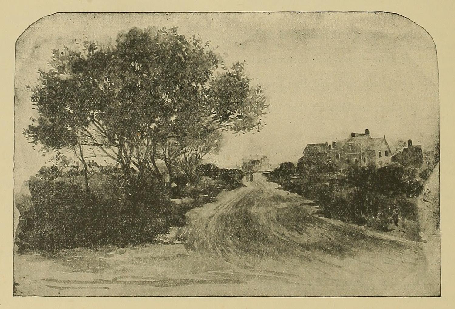 “The Street to the Sea” is in fact a picture of the sea, although the same is hardly in sight. Everything shows that we are approaching the great Country of the Waters. The villas in view; the wheel-harrowed road, admirably foreshortened; the deep shadows upon each side of the way; human figures looming faintly in the distance; everything, in fact, is somehow telling us a tale of the ocean, and we do not need our too sparse glimpse of the “solemn main” to tell what majestic voice will soon bring us to a halt; we almost smell the salt air.