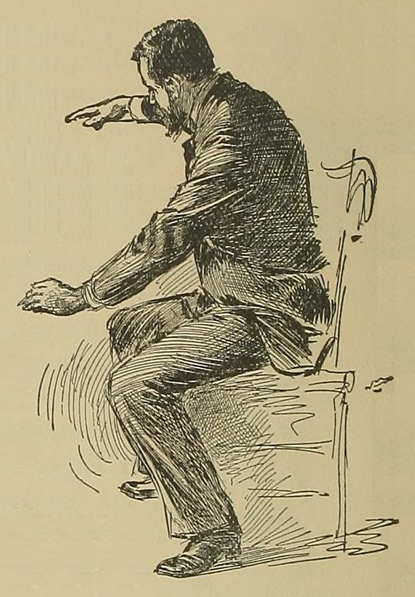three inches he had left to hold the button slips through the eye in a twinkling, and the button rolls leisurely across the floor. He picks it up without a single remark, out of respect to his children, and makes another attempt to fasten it. This time when coming back with the needle he keeps both the thread and button from slipping by covering them with his thumb, and it is out of regard for that part of him that he feels around for the eye in a very careful and judicious manner; but eventually losing his philosophy as the search becomes more and more hopeless, he falls to jabbing about in a loose and savage manner, and it is just then the needle finds the opening, and comes up through the button and part way through his thumb with a celerity that no human ingenuity can guard against. Then he lays down the things, with a few familiar quotations, and presses the injured hand between his knees, and then holds it under the other arm, and finally jams it into his mouth, and all the while he prances about the floor, and calls upon heaven and earth to witness that there has never been anything like it since the world was created, and howls, and whistles, and moans, and sobs. After awhile, he calms down, and puts on his pants, and fastens them together with a stick, and goes to his business a changed man.