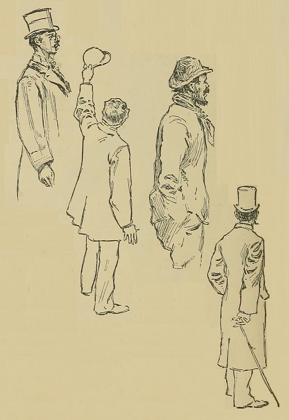 “Bon Voyage” shows the different attitudes which men will take while intently gazing at the same object. It does not necessarily follow that the “she” referred to is a lady; it may be and probably is, a ship, upon which all of our captured gazers have friends. Each one takes his own peculiar posture of observation; and their characters can be read from them.