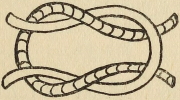 Chain Slip-knot (Fig. 63).—We will start then with a slip-knot, which forms the first loop for the chain (Fig. 63). Wind the wool once round the first two fingers of the left hand and pull the long end of the wool through the circle thus made in a such a way as to form a loop; insert the hook; pull both ends of the wool and tighten the knot sufficiently to leave an easy passage for the hook through it. The next stitch is made by taking up the long end of the wool with the hook and drawing it through the loop. Repeat this process until the length of chain required has been obtained (Fig. 64). A little practice will soon give the regularity of stitch necessary.