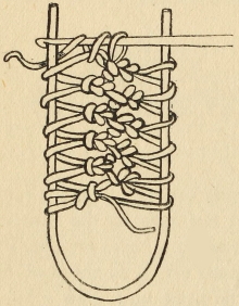Blunt-pointed tapestry needles, No. 18, suitable for needle-weaving, crewel and chenille needles, and the excellent “Scientific Sharps” may be had from most of the needlework depots, or through any of their agents.