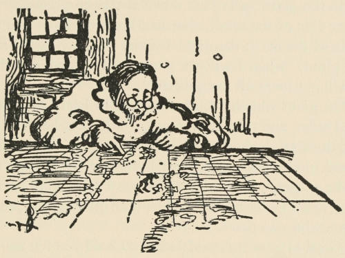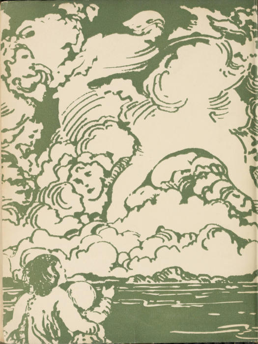 The young giant went on, whistling a little ruefully. Another man passed him, and another,—two or three driving in a tiny cart behind a little animal. Presently they came so thick and fast that Benevaldo had to keep skipping aside to avoid stepping on them. The whole[309] country was dotted with their absurd houses; and he saw now that the green and brown squares must be their fields, and the tiny paths their highways.