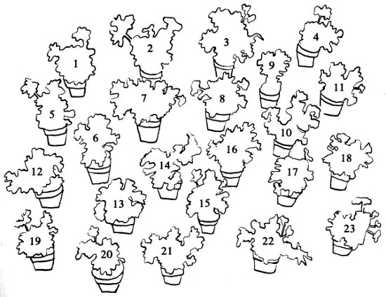 | Twenty-three varieties of miniature and dwarf geraniums | 128–129 |