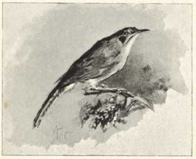 [5] Pied Fantail. Piwakawaka (Rhipidura flabellifera.)—A small fly-catcher; plumage greyish brown. While busily engaged catching mosquitos or sand flies, these birds steer with their fan-shaped tails, making fantastic evolutions in the air. When a fantail has spied out with its big black eyes the hiding place of the owl, in the daytime it will call its mates together and show them the spot where their enemy dwells, and then all the birds dart at the owl, and fly round and round, annoying it in every possible manner until they chase it away.—A. R.