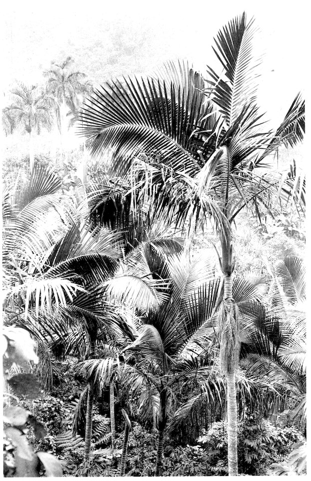 From the popular standpoint another serious inconvenience of the systematic literature of palms arises from the fact that it is based so largely on floral characters that even the botanical traveler might need to wait months for the blossoms and then climb the trees or cut them down before being able to secure a clue to botanical names or relationships. But however necessary refinements of formal characters may be in presenting classifications or monographs of large groups, more obvious differences may still be adequate for distinguishing between the species, genera and families represented in a limited flora like that of Puerto Rico. In the present paper use is made therefore of obvious external differences, not only because of the greater convenience and utility of such facts in field study but also in the belief that with the palms, at least, the vegetative, habitat and ecological features are often quite as important for diagnostic purposes as the more technical and conventionalized characters to which botanists are accustomed in dealing with other natural orders.