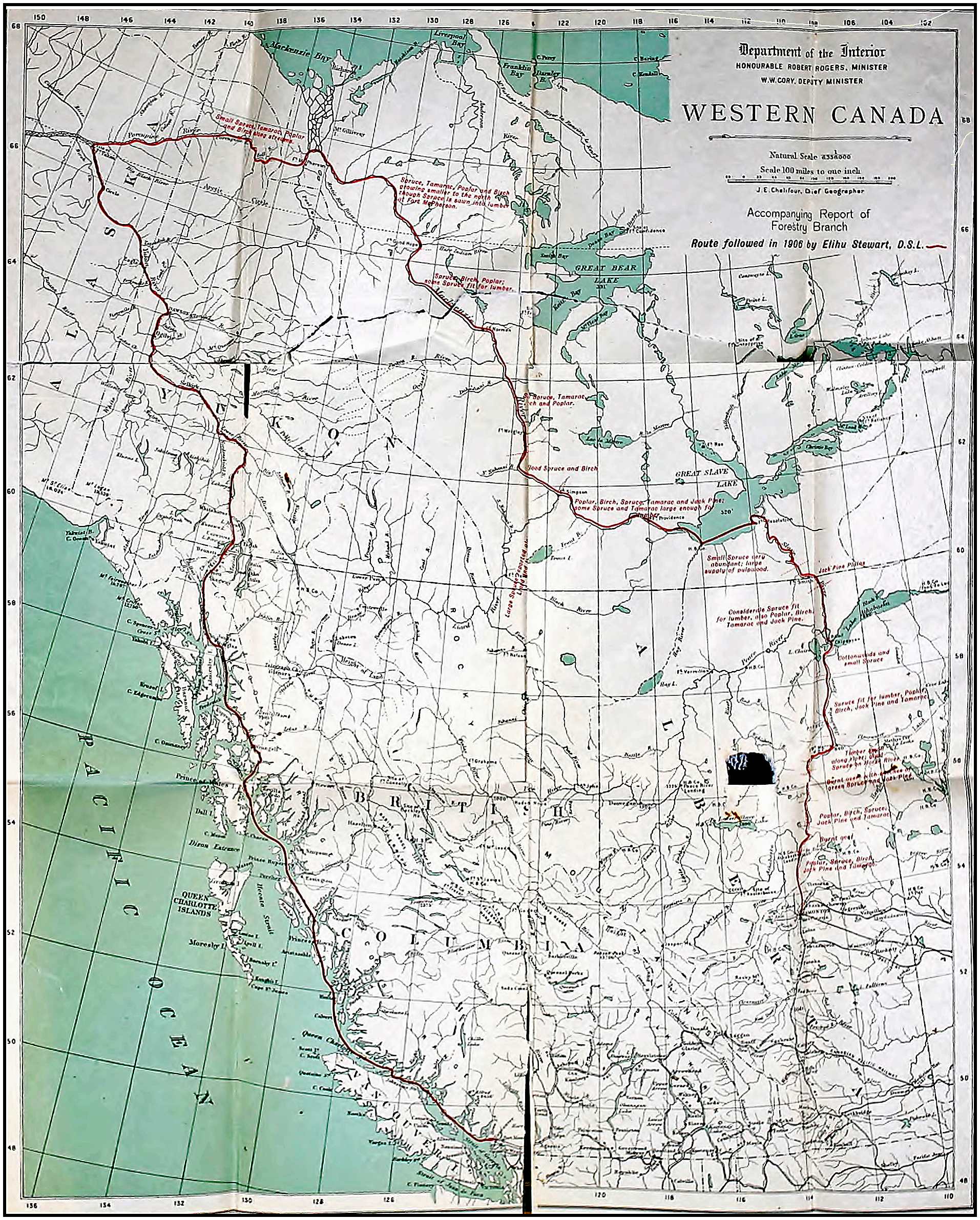 Route followed in 1905 by Elihu Stewart, D.S.L.