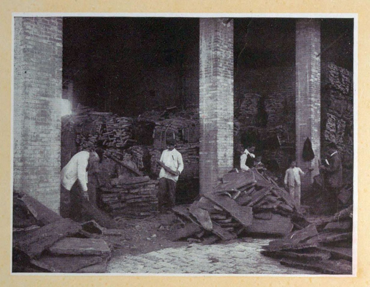 The expert Spanish sorters having finished their work, the bark is ready to be rebaled for shipment to America.