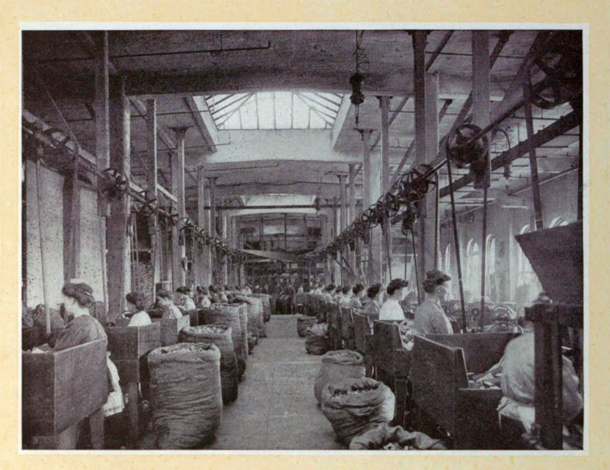 Both “straights” and “tapers” next journey to the washing rooms. There dumped in great vats, thousands at a time, they are carefully washed and then dried by being whirled about dizzily in great revolving cylinders of wire net located in heated chambers.