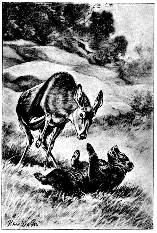 Seeing in the little fellows something so like what Dapple had been the year before, he sometimes tried to play tag with them, but no sooner would he make a movement toward them than off they would bound in great leaps that took them clear over the tops of the bushes, and in two seconds they were clear out of sight, doe and fawns together.